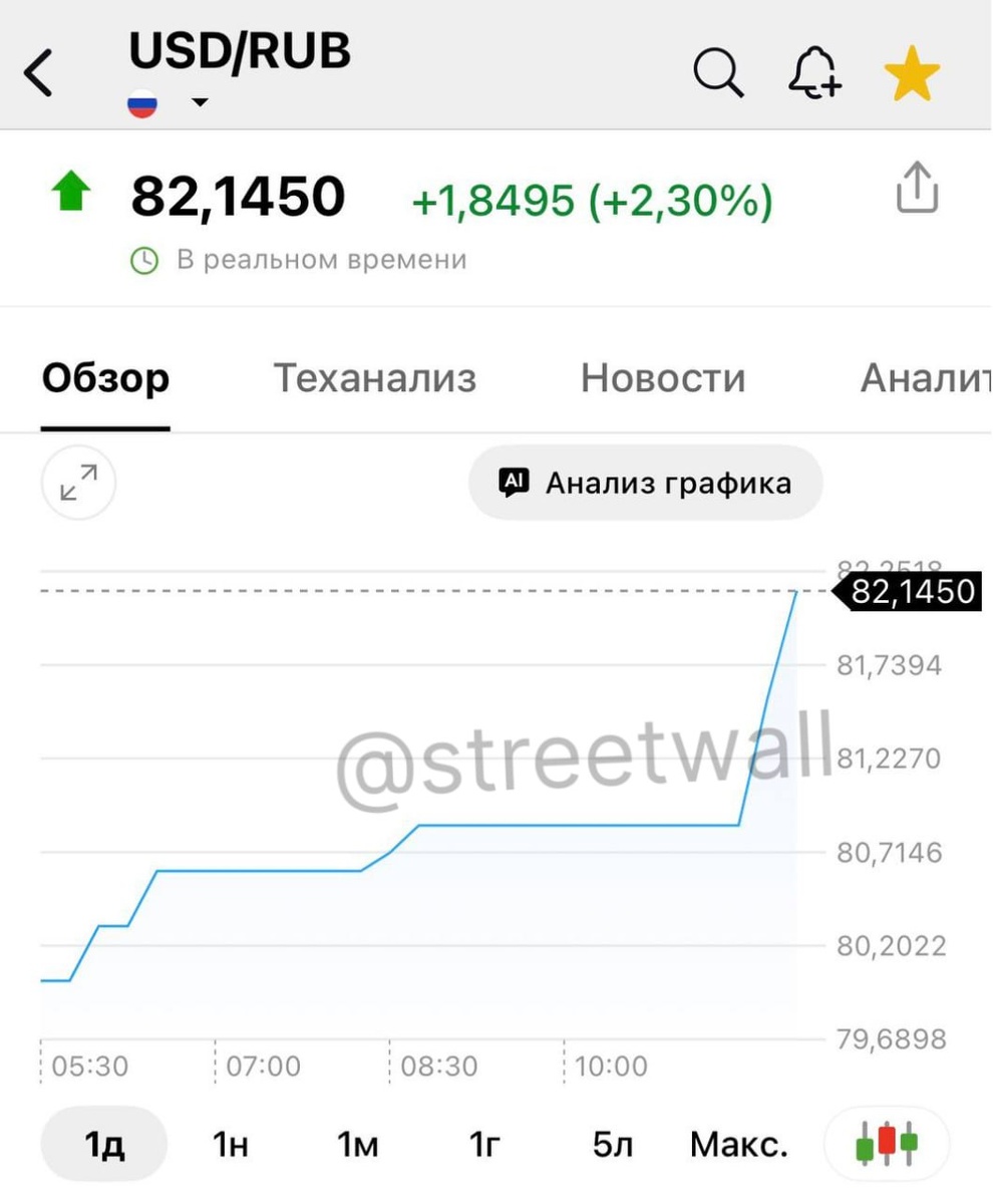Курс доллара укрепился, превысив отметку в 82 рубля. Это событие привлекло внимание финансовых аналитиков и участников рынка. ────────── ⚡️Важные новости – без лишнего шума!⚡️ Подпишись на канал и получай только суть: оперативно, чётко, по делу! 👉 ИнфоСплетник | @infospletnik