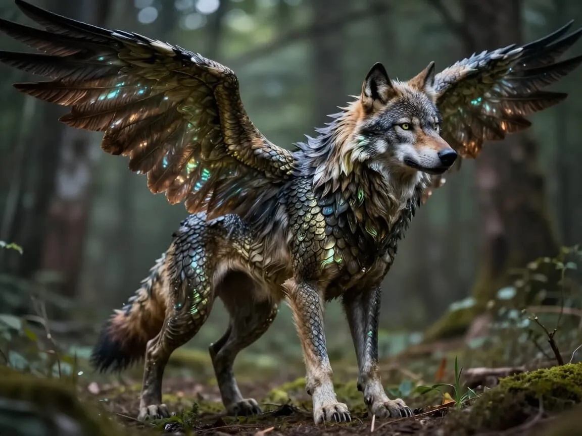 √ Баланс сил. Синтез волка, змеи и крыльев — это аллегория гармонии между инстинктом, мудростью и духовностью.