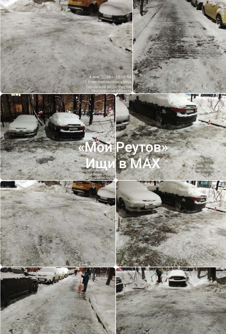 ❗Мой Реутов, Здравствуйте! Уборка указанной территории от снега и наледи выполнена 04.01.2026г. С уважением, администрация г.о. Реутов! 📲 «Мой Реутов» в MAX