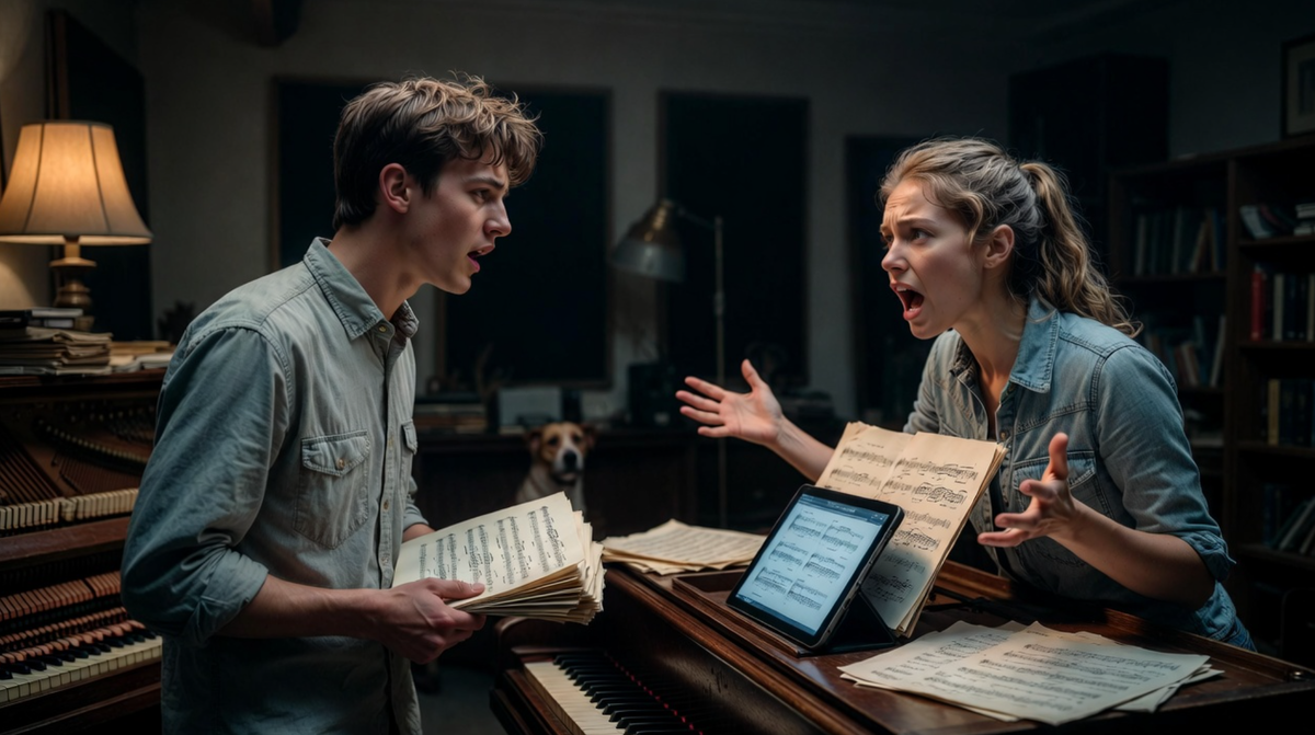 Это был уже третий день её пребывания в городке. Напряжение копилось с самого первого часа, как пар в закупоренном котле. Они спорили о каждой фразе, о каждом динамическом оттенке. Марк уступал в мелочах, но цеплялся за главное — за интонацию, за то неуловимое «настроение», которое, как он верил, и было сутью его «Осенней симфонии». Алиса же методично, как бульдозер, продвигала свою повестку: усложнить, украсить, привести в соответствие с канонами конкурсной музыки.