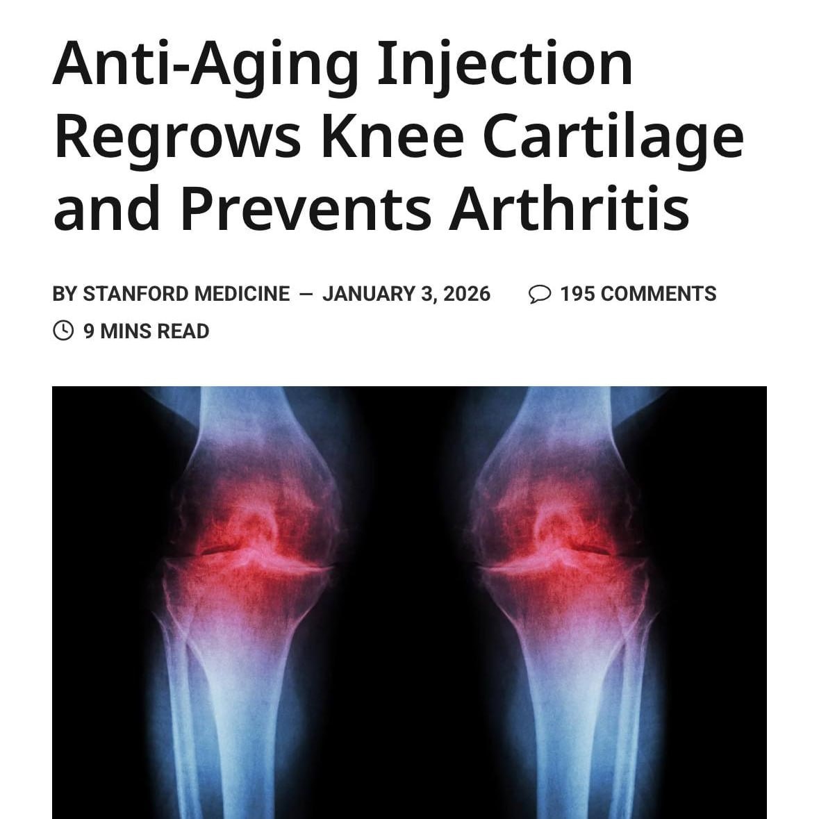 Ученые из Стэнфорда нашли способ восстанавливать хрящ, блокируя белок 15-PGDH, который накапливается в суставах с возрастом и мешает регенерации. В ходе тестов инъекции препарата «омолодили» суставы пожилых мышей: они снова начали активно двигаться без боли. Испытания на человеческих тканях также подтвердили рост полноценного хряща вместо бесполезного рубца. Сейчас лекарство проходит первую фазу клинических испытаний на людях. Если успех подтвердится, артрит начнут лечить простыми уколами или таблетками.