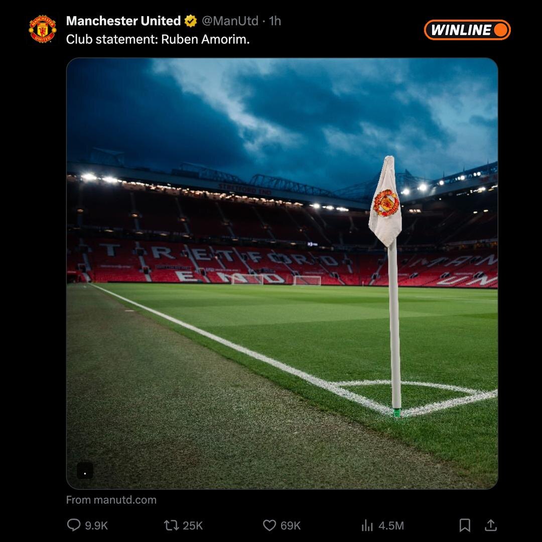 Манчестер Юнайтед официально подтвердил увольнение Рубена Аморима фоткой углового флажка ⛳