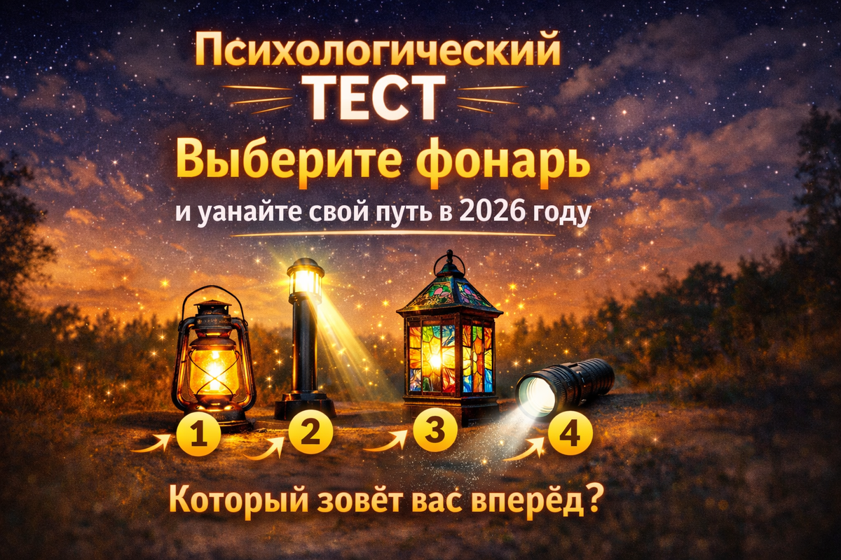 Иногда будущее не приходит громко. Оно загорается тихим светом - там, где вы готовы его заметить. Этот тест не про предсказания, а про направление внимания. Посмотрите на 4 фонаря и выберите тот, который притянул взгляд первым. ❗ Важно: не рассуждайте логически, выбирайте первое, что пришло в голову, даже если вы не можете объяснит почему. Первый импульс - самый честный. 🧠 Ваше состояние сейчас