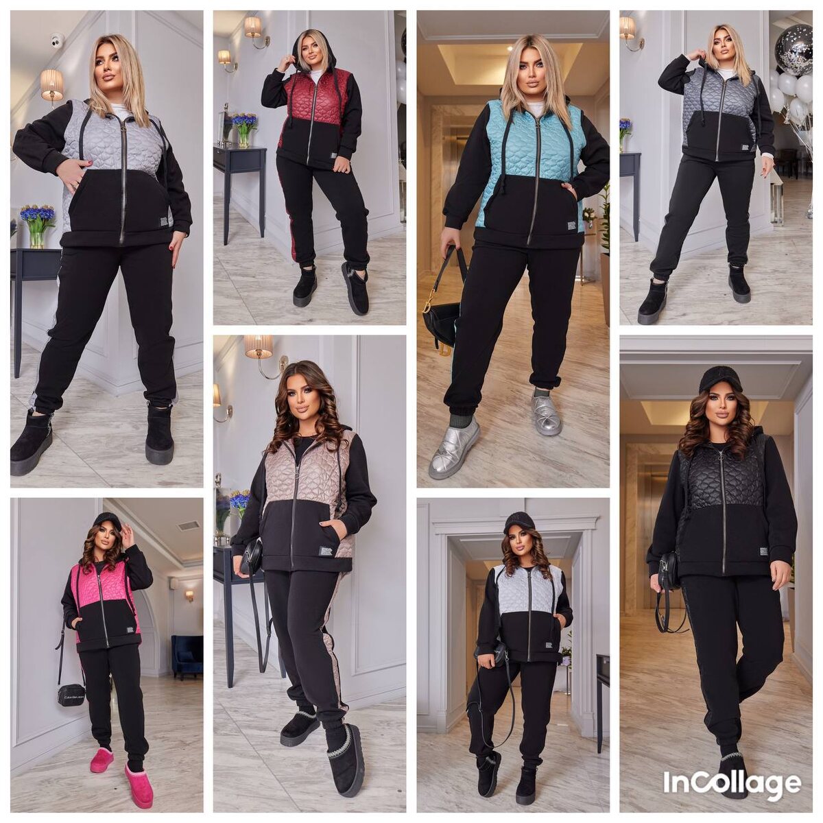 Цена: 5000 руб Размер: 48-50,52-54,56-58 Ткань: трехнитка на флисе + стеганная плащевка лаке на синтепоне 100 Стильный теплый костюм подойдет на сезон осень – зима, комбинированная кофта на змейке с удобными карманами кенгуру, удобный глубокий капюшон. Брюки с высокой посадкой, карманы, низ на манжете (резинка) Замеры кофты: 48-50: ог: 120 см, длина рукава от плеча: 60 см, длина кофты по переду: 68 см, длина кофты по спинке: 75 см 52-54: ог: 128 см, длина рукава от плеча: 61 см, длина кофты по переду: 71 см, длина кофты по спинке: 77 см 56-58: ог: 136 см, длина рукава от плеча: 62 см, длина кофты по переду: 72 см, длина кофты по спинке: 78 см Замеры штанов: 48-50: ОБ: 112 см. Длина по наружному/внутреннему шву: 104/74 см 52-54: ОБ: 120 см. Длина по наружному/внутреннему шву: 106/76 см 56-58: ОБ: 128 см. Длина по наружному/внутреннему шву: 108/78 см мод УК-474
