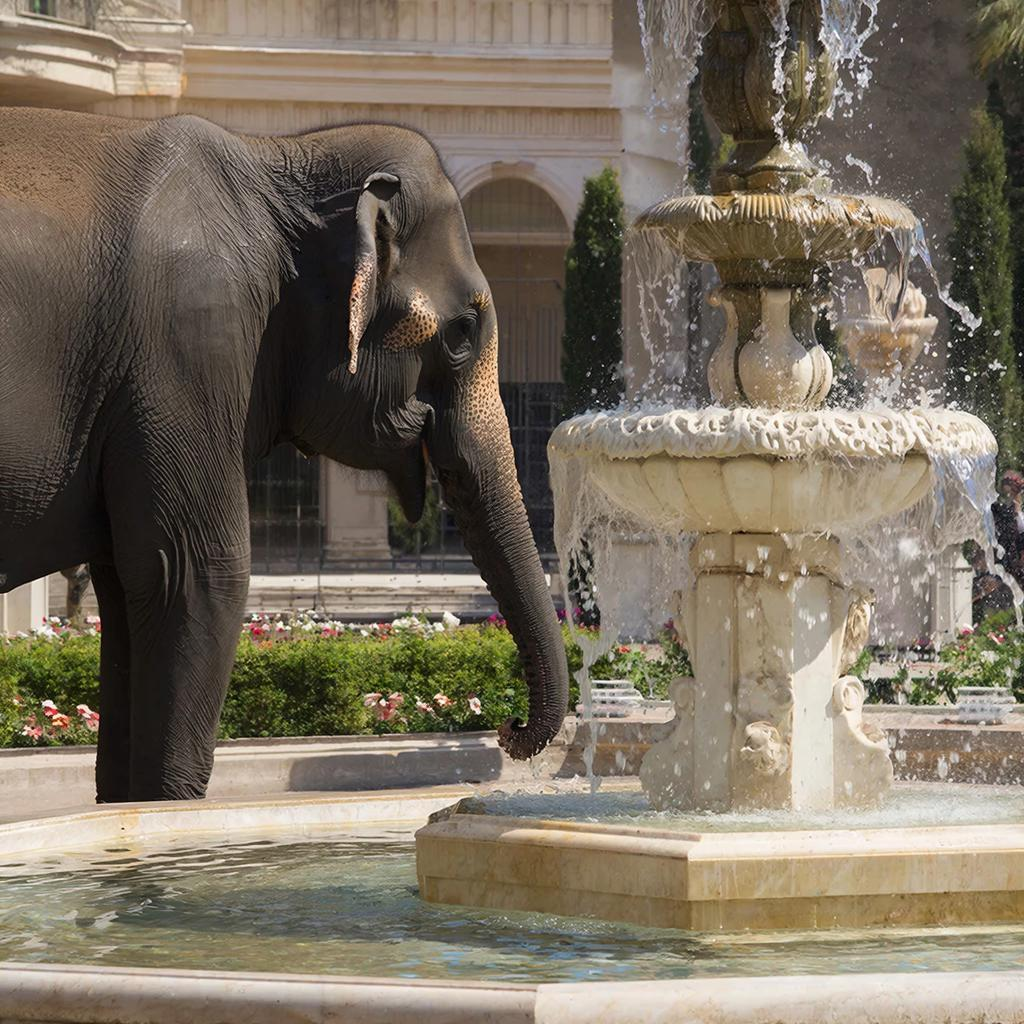 Рассказ Когда я был совсем маленький, мы в обычный субботний день с папой пошли в парикмахерскую подстричься. Стояла та самая июльская жара, от которой асфальт плавился под ногами, а воздух над площадью колыхался маревом. Чтобы спастись от духоты, мы решили пройти через центр, мимо нашего единственного городского фонтана — бетонной чаши с ржавыми трубами, из которых сочилась теплая, пахнущая хлоркой вода. Ещё издалека мы увидели непривычное движение и услышали гул голосов — не тревожный, а радостно-возбуждённый. У фонтана столпился народ: дети, бабушки с авоськами, рабочие в спецовках. Когда мы подошли ближе, то увидели что-то невообразимое огромное и серое. Мы увидели... слона. Это был настоящий, живой слон, который, не спеша, набирал воду хоботом из чаши нашего городского старого фонтана и обливал себе спину и бока. Вода стекала с его шкуры, покрытой глубокими морщинами, напоминающая высохшую землю, и образовывала на раскалённом асфальте целые лужи. Он дышал размеренно и шумно, а его