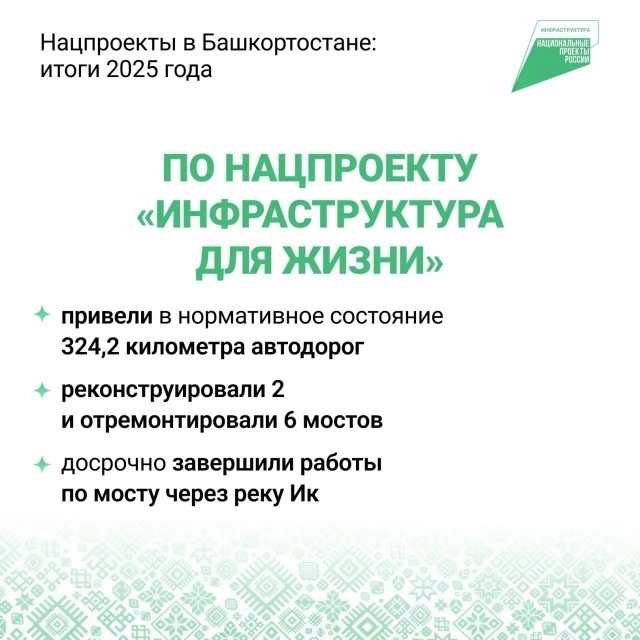 В республике строились поликлиники и ФАПы, ремонтировались школы, благоустраивались территории. На своих страницах в соцсетях глава Башкирии Радий Хабиров рассказал об итогах реализации национальных проектов в регионе за прошлый год. В частности, он отметил, что за этот период появилось 6 новых поликлиник и 134 ФАПа, было отремонтировано 35 школ, благоустроены 170 территорий, дороги, мосты, объекты коммунальной инфраструктуры и многое другое. — Всего мы вели работу по 12 новым нацпроектам. По каждому из них привлекли в республику серьезные федеральные средства. Благодарю Президента и Правительство страны за поддержку, которая позволяет нам развивать экономику, строить, обновлять, приводить в порядок ключевые объекты по всей республике – несмотря на сложные времена. Эту работу мы обязательно продолжим и в наступившем году, — подчеркнул он. Фото: соцсети главы РБ.