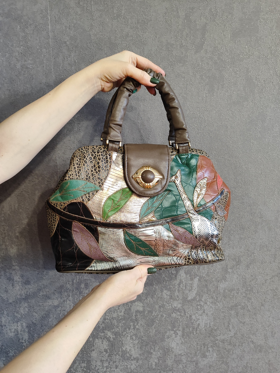 Зима с тропически настроением🍹 ---------------------- Всем привет! Меня зовут Ирина, добро пожаловать на мой канал! Сегодня покажу удивительную винтажную сумку из Кореи, пушистую шубку и зимний образ новогодней недели. Начнем с уникальной винтажной сумки из Кореи. Калейдоскоп фактур, от которого невозможно отвести глаз – от бренда "Nas Bag". Информации об этом бренде никакой нет. Встречающиеся сумки – это винтаж из 80-90-х годов. Но по их сумкам у меня уже сложилось приятное впечатление о бренде. Их фирменный почерк – пэчворк. Сумки созданы в технике лоскутного шитья – сложная кожаная мозаика. Мастера соединяют кусочки разных форм, цветов и размеров, собирая их в единое полотно. Благодаря этому практически невозможно найти две абсолютно идентичные сумки. "Nas Bag" смешивают несмешиваемое. В одном изделии часто соседствуют гладкая матовая кожа, замша, кожа с тиснением «под крокодила», «змею» или «страуса», металлики. Примечательно, что все сумки из искусственной кожи великолепного ка