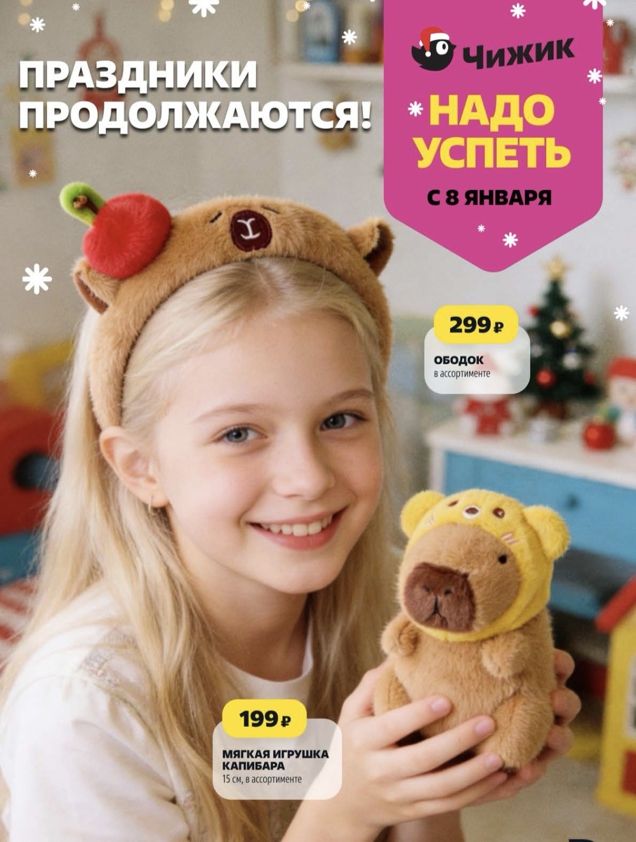 Новый год самый теплый и уютный праздник, чтобы развлекать детей! Водить на фильмы и смотреть сериалы! На первой странице главная новинка мягкая игрушка Капибар 😉😂а ещё уютный ободок!
