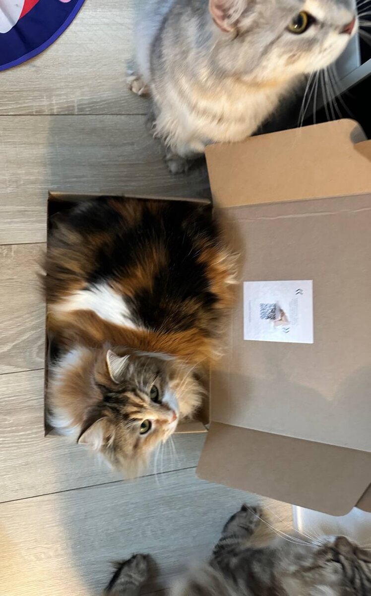 Выходные проходят в стрессе - из 2 коробок всем котам нужна только одна, а Оливыча вообще папа мучает🤣
