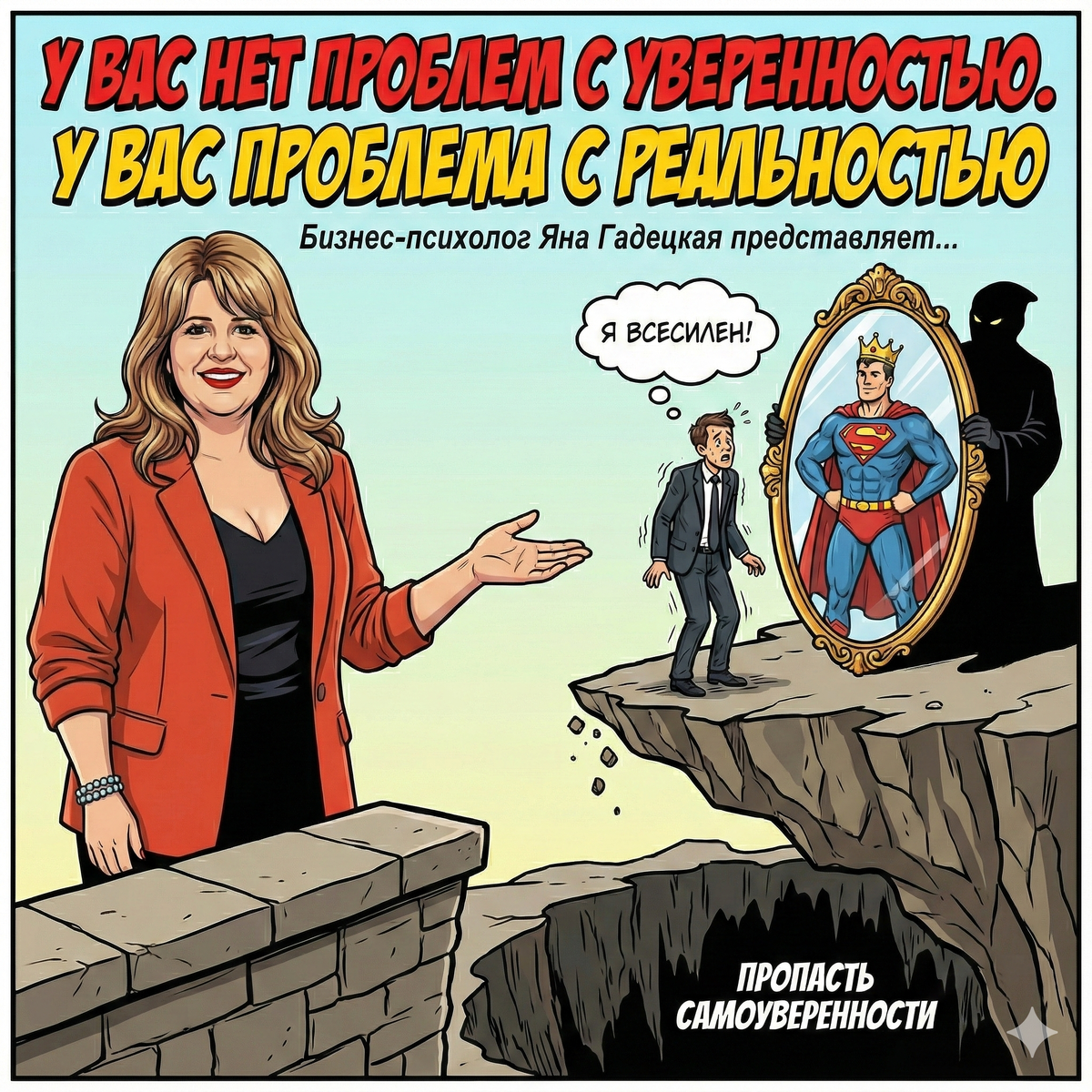 Принято считать, что большинству людей не хватает уверенности в себе. Из каждого утюга нам кричат: «Поверь в себя!», «Ты достоин лучшего!», «Ты можешь всё!». Мои наблюдения за 20+ лет практики показывают обратное: большая часть провалов в жизни и бизнесе случается не из-за неуверенности, а из-за её переизбытка. Многие называют это «верой в себя», но часто это обычная самоуверенность или «инфантильная грандиозность - комплекс бога». Как выглядит этот «Комплекс Бога» в обычной жизни? Человек попадая в это состояние думает, что всемогущий, и если что, мир должен прогнуться (пойти на встречу, быть справедливым и пр.). А реальность же говорит об обратном, например среди зависимых дольше всего в ремиссии остаются те, кто признал свою слабость. Кто знает: «Я бессилен перед первой рюмкой, поэтому я не иду в бар», они подстраховываются вовремя. А срываются те, кто бравирует: «Да у меня железная воля, я смогу вовремя остановиться». В бизнесе то же самое. Эксперты, о которых никто не знает, часто