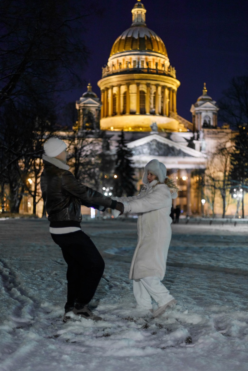 Оксана и Владимир на прогулочной фотосессии по новогоднему Санкт-Петербургу