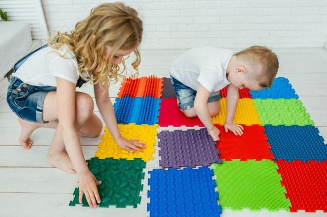 - Модульность: Коврики-пазлы – лучший вариант. Вы можете собирать дорожки разной длины, лабиринты, островки, меняя маршрут и поддерживая интерес ребёнка.