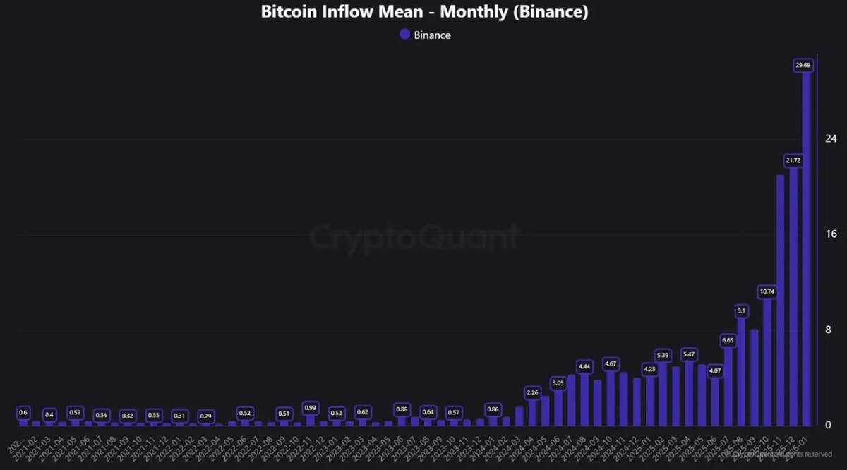Average deposit size to Binance has surged 34x, indicating larger holders are becoming more active, according to CryptoQuant data.