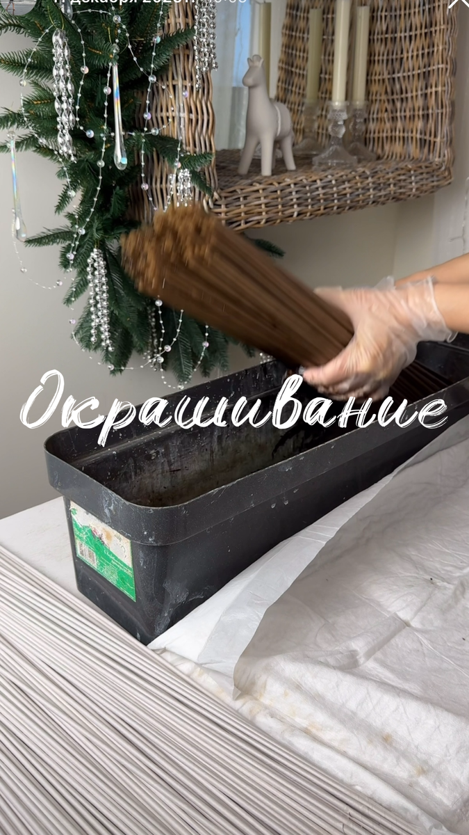 1. Этап окрашивания. Красить бумажные трубочки можно как водными морилками для дерева, так и составами на основе лака (эмали) и колеров. Окрасили и даем высохнуть перед тем как приступим ко второму этапу.
