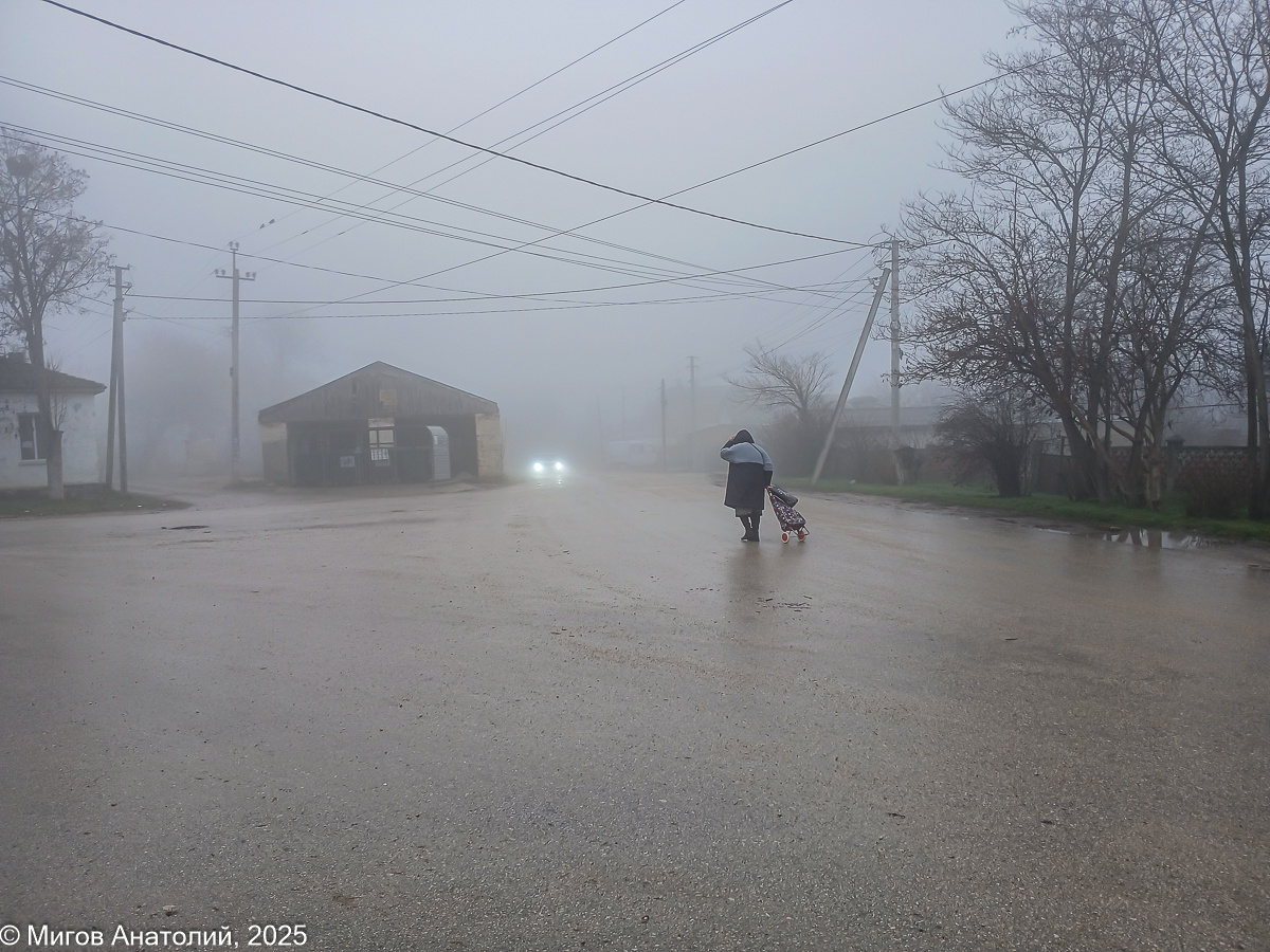 Первая старокрымская зима закончилась. Осталось пережить ещё три и лето вернётся. Сейчас в городке тепло, снег растаял. Туман навалился. Всё кругом незнакомое и слегка тревожное. У входа в ГорСад виднеются кроны крымских сосен, а дальше клубится густая серо-белая пелена. Видимость всего метров двадцать. Автомобили едут неспешно, с включенными противотуманками или дальним светом. Штормовые ветра, которые гуляли в городе два дня назад, утихли. Сейчас воздух стоит неподвижно, полный штиль. Если ветерок не подует, то туман так и будет стоять. Ведь это не совсем туман, а просто упавшее на город облако. Может пролежать так и сутки, и двое. Прошёл через Екатерининский сквер. Это самый новый городской сквер, открытый два года назад. На земле ещё лежат ветки, сбитые недавними ветрами. Дошёл до храма Александра Невского. Это третий в Старом Крыму православный храм, построенный уже в то время, когда мы сюда переехали. Рядом памятник святому князю Александру Ярославовичу, вот он стоял тут ещё до н