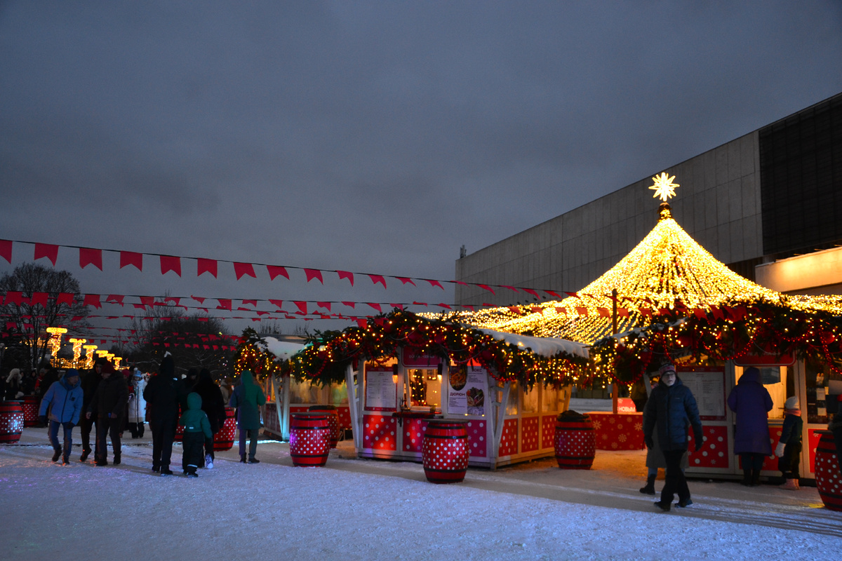 Вопрос, куда пойти на новогодних праздниках в Москве, с одной стороны, вроде бы не стоит. Вокруг столько всего интересного и красивого, что глаза разбегаются. С другой стороны, на все более-менее интересные мероприятия билеты раскуплены заранее, в центре - невероятные людские толпы. Куда же пойти? Мы решили заглянуть в парк Горького - место, популярное во все времена года. Чем же там можно сейчас заняться? 1. Гастрофестиваль "Вкусные морозы". В парке Музеон, который сейчас является частью парка Горького, до 11 января проходит гастрофестиваль. В анонсах нас завлекают вкусными блюдами из разных ресторанов. Действительно, аппетитные запахи ты начинаешь ощущать уже на подходах к Музеону. Но... Не знаю, кому как, но у меня ни один из киосков не вызвал горячего желания приобщится к представленным кухням. Вот ресторан "Три утки" предлагает рис с грибами, удон с говядиной и другие блюда. Каждое примерно по 750 рублей. Вот "Burger Heroes" с их обычным меню. "Чебуречная by Mironov" манит чебуре