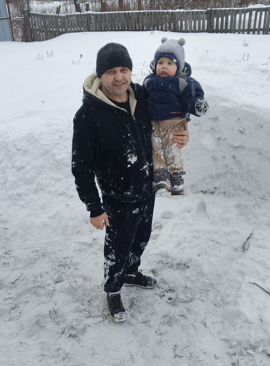 Заглядывая папе в глазки, он повторял за ним все движения))) И дело пошло. В течении часа мы усиленно, всем семейством очищали двор. Откопали машину, и даже пробили заезд во двор до асфальта. Всё это время малыш был рядом с нами и усиленно помогал.)))