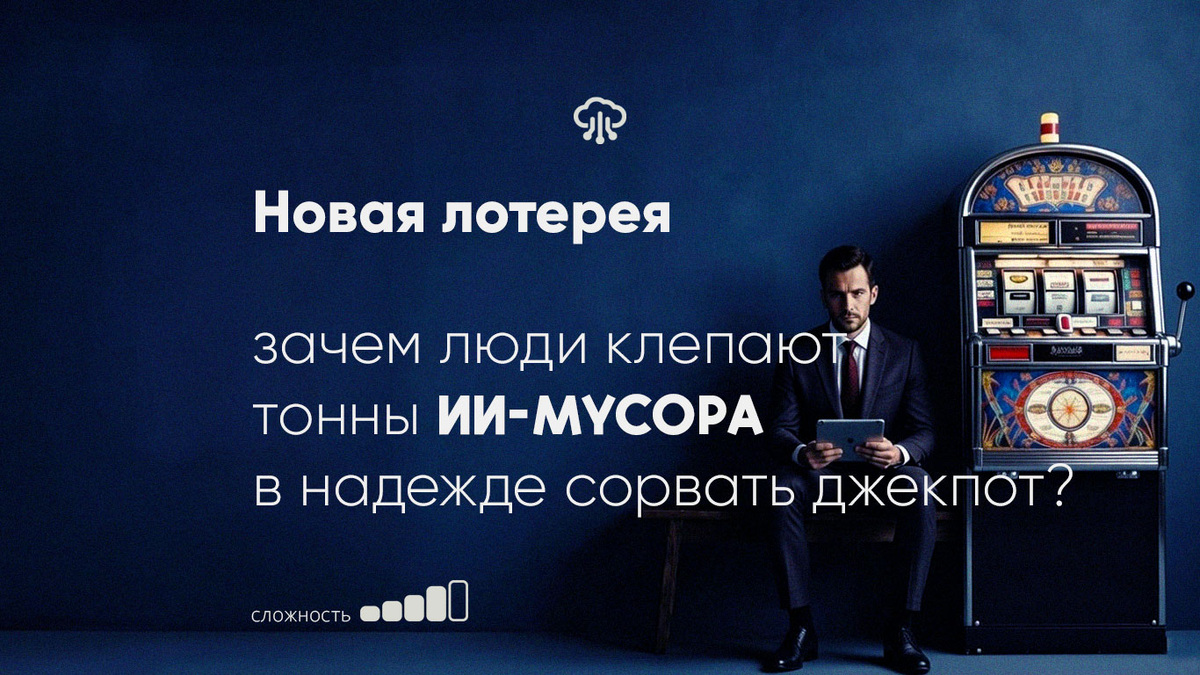 Мечта о «вирусном попадании» заменяет бизнес-модель. Мы верим, что нейросети — это автомат, который однажды выдаст джекпот, и можно будет жить на проценты. Это лотерейное мышление: главное — купить как можно больше билетов.