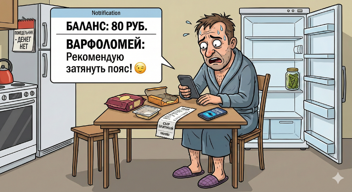 Телефон меня сегодня утром не узнал. Категорически отказался проводить идентификацию личности. Видимо, выражение моего лица перед проверкой банковского счета не соответствует стандартам жизнерадостного гражданина 2026 года. Пришлось вводить пароль вручную. Пальцы дрожали, как у сапера над красным проводом. Потому что проверка баланса после выходных - это, граждане, не финансовая процедура. Это чистой воды экзистенциальный риск. Приложение банка загружалось медленно. Крутилось это их колесико, гипнотизировало. Словно искусственный интеллект там, в недрах сервера, судорожно искал мои капиталы и не находил даже мелочи на проезд. А ведь я человек ответственный. Я даже бюджет планировал. В специальную таблицу данные заносил. Графу «Прочее» старался не раздувать до размеров государственного долга. Экран наконец моргнул и явил мне Истину. Цифра была скромная. Я бы даже сказал - интеллигентная. Она не кричала о роскоши, не пугала количеством нулей. Она тихо шептала, что до зарплаты придется ос