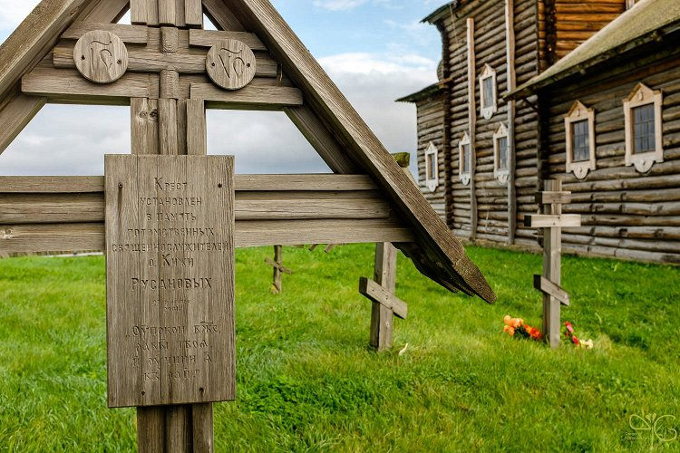 Кладбище Кижского погоста это не просто место захоронений, а часть культурного наследия, отражающая традиции и верования жителей Русского Севера. Здесь сохранились уникальные деревянные надгробия, а также связаны местные легенды и предания. Конкретные надгробия На кладбище Кижского погоста можно выделить несколько типов надгробий, характерных для Русского Севера: Одно из известных захоронений на кладбище - могила Трофима Григорьевича Рябинина. Это знаменитый заонежский сказитель, автор былин «Илья и Соловей», «Добрыня и Змей» и других. Песни на некоторые его произведения были записаны именно на Кижах. В 1885 году он был похоронен на кладбище Кижского погоста. Ещё одно значимое захоронение это могила Александра Андреевича Русанова (1847–1905 гг.). Он был учителем Кижского и Середкинского земских училищ, а в последние годы жизни псаломщиком Кижских церквей. Представитель древнего священнического рода. В 2001 году сотрудники музея восстановили крест на его могиле. С Кижским погостом и ег