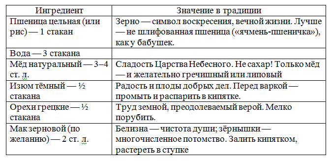 Кутья Рождественская (Сочиво) По обычаю русских семей XIX века. Для 4–6 человек. Что нужно: 1. Накануне — замочите пшеницу в холодной воде на 8–12 часов (лучше — с вечера). 2. Утром слейте воду, промойте зёрна, залейте свежей водой — и варите на тихом огне 1,5–2 часа, пока зёрна не станут мягкими, но не разварятся. 3. Отваренную пшеницу откиньте на дуршлаг, дайте стечь. Верните в кастрюлю. 4. Добавьте мёд — не в кипяток, а когда каша чуть остыла (иначе мёд теряет силу). Перемешайте деревянной ложкой. 5. Добавить изюм, орехи мак. Все перемешать. 6. Накройте кастрюлю крышкой и дайте настояться 30 минут. - Подавайте сочиво в глубокой деревянной миске или глиняном горшочке. - Поставьте миску в центр стола — первую ложку съедают в память об усопших (можно тихо сказать: «Помянем…»). - Вторую — за здравие живых. - Третью — в честь Рождества Христова. Если кутья получилась густовата — добавьте немного отвара из изюма или компота из сушёных груш. Так делали на селе — чтобы «жизнь лилась, как