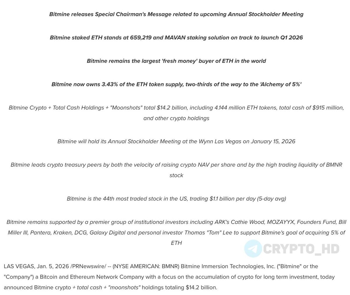 π #ETH ΠΠΎΠΌΠΏΠ°Π½ΠΈΡ BitMine ΠΊΡΠΏΠΈΠ»Π° ΡΠΆΠ΅ 4,143,502 ETH ($13b) β ΠΏΡΠΈΠΌΠ΅ΡΠ½ΠΎ 3,43% ΠΎΡ Total supply (ΡΠ΅Π»ΠΈΠ·