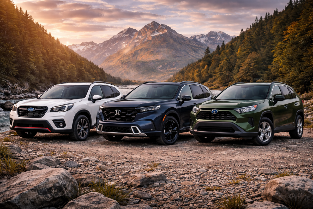 Forester — «лесник», RAV4 и CR-V — бестселлеры сегмента, а Outback — «премиальный универсал» с повышенной проходимостью.