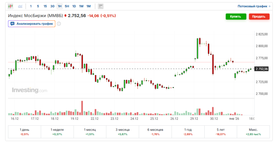Рынок вниз, валюта вверх - как начались первые торги 2026 в выходные дни
