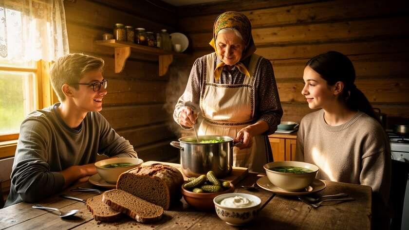 Рассказ читательницы Когда Аня поступила в институт в Москве, она быстро обзавелась друзьями и на выходные стала иногда привозить их к бабушке в деревню под Рязанью. Первым появился Клаус из Баварии — парень учился по на обмену, аккуратный, как все немцы. Аня заранее взяла меня в оборот: — Мам, бабушка Зина пусть помолчит про войну. И он вегетарианец, пыль не переносит, привык к чистоте. Гости из Европы ждут комфорта, хотя бы как в приличном хостеле. Я только головой покачала. Бабушка Зине 68, живёт одна после деда, дом её — сплошная память, почти музей: самовар, прялка, полки с вареньем. Для Аниных ровесников она как экспонат из прошлого века -- да оно так и есть. Приехали в субботу. Три часа трассой, потом ухабами. Клаус сзади сидел тихо, только заметил: — Природа красивая, но дорога... грязновата. Аня мне на ухо: «Видишь, уже ворчит». Дома Зина вышла во двор — платок, фартук на джинсах (хоть одна современная вещь, подарок Анин). На столе миска с солеными огурцами из бочки, свежий х
