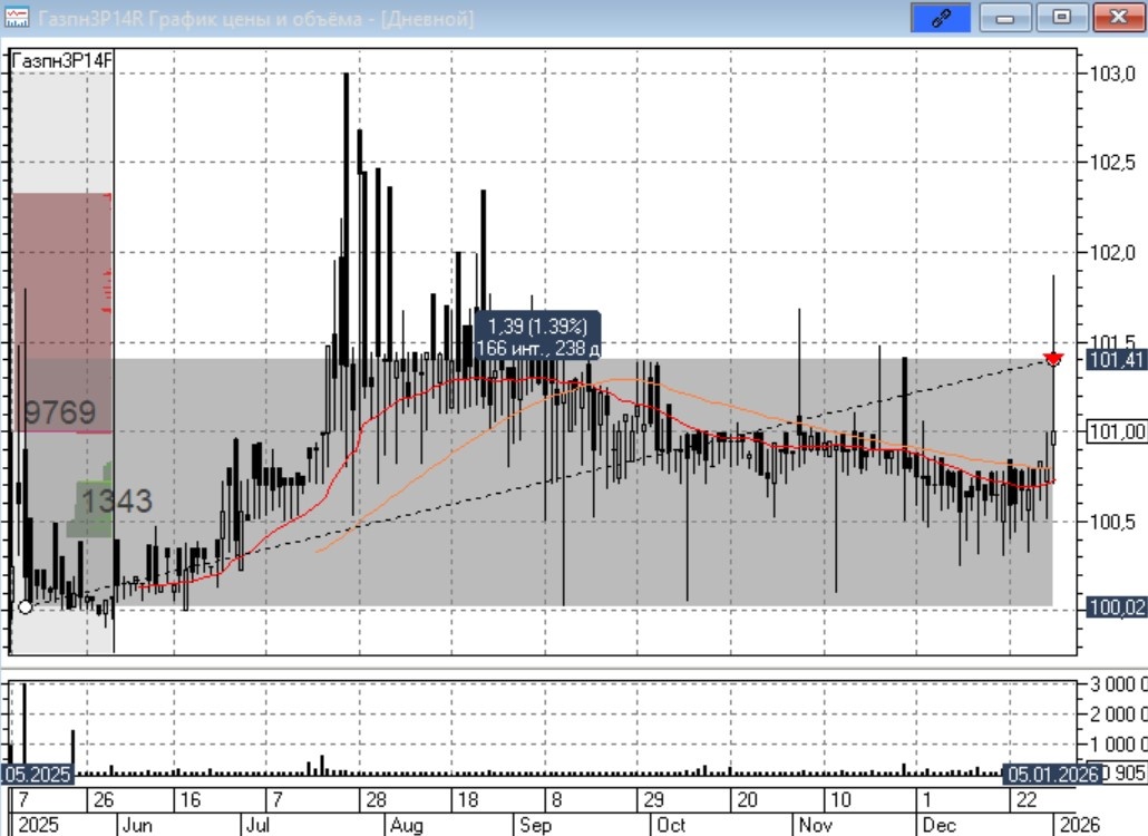 Первые сделки 2026 года. Сработал стоп-ордер на продажу облигаций Газпн3Р14R (RU000A10BK09, ААА), годовой купонный доход КС + 2%. НА восходящей шпильке зафиксировали профит в 1,3%. Докупаем облигации БалтЛизП18 (RU000A10BZJ4, кредитный рейтинг АА-), постоянный годовой купонный доход 19%. Средняя цена пакета облигация почти на 3% ниже номинала.