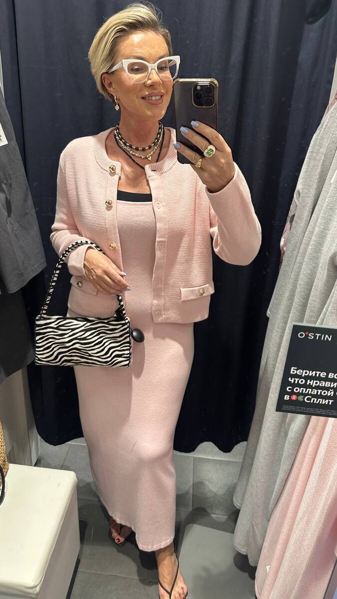 Здравствуйте, дорогие читатели! Сегодня предлагаю посмотреть на новинки бренда O’STIN, а также уделить особое внимание одежде с распродажи. Не забывайте ставить лайк за мои старания! Начну с распродажи. Я вам уже показывала этот комплект, но так как вещи сейчас продаются с хорошими скидками, то покажу еще раз. Свет на фото не особо комплиментарен, но сама одежда хорошая. Нежно-розовое платье на тонких бретелях с добавлением кашемира. Я примерила поверх своего черного топа, так смотрится даже лучше, на мой взгляд. Цена - всего 999 рублей. Ссылка на платье К платью можно приобрести длинный кардиган, а можно - укороченный, с золотой фурнитурой и круглым вырезом. Ссылка на кардиган Еще одно хорошее платье, которое я примеряла, ныне продающееся за 999 рублей, - голубое, в рубчик. Его тоже можно носить с топом. Ссылка на платье Удлиненный серый кардиган с добавлением шерсти, который тоже был у меня на примерке. В комплекте идет пояс. Ссылка на кардиган Стильная вязаная шапка-шарф в актуально