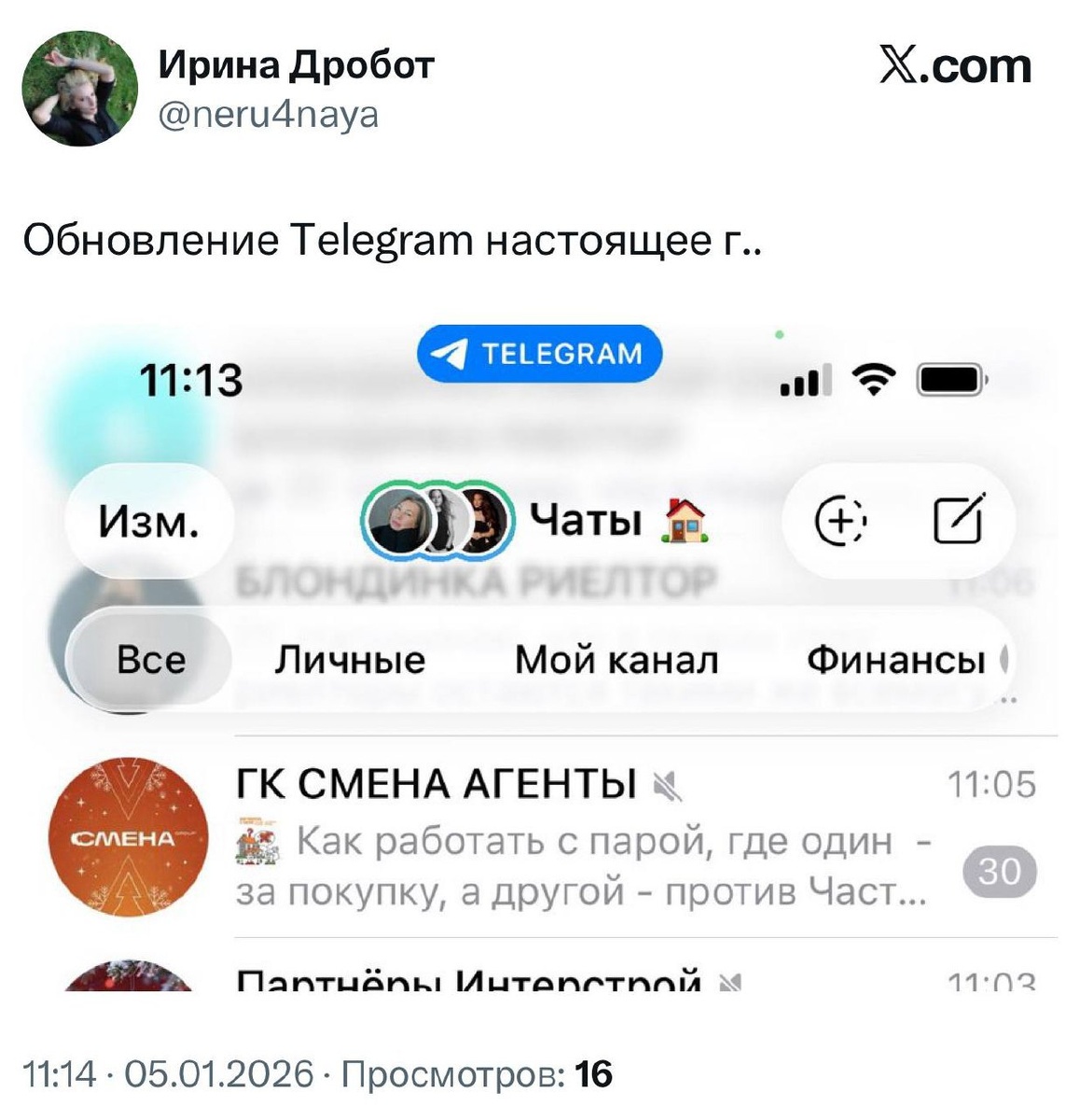 Я его сама на*ер снесу Люди ВЗБУНТОВАЛИСЬ из-за новой обновы Телеги — в мессенджере добавили ещё БОЛЬШЕ «жидкого стекла» и передвинули кнопки. В соцсетях теперь жалуются, что это уродливо, неудобно и непривычно. 😭 — согласен, это ужасно, верните старый интерфейс ❤️ — да нормик, привыкнем CtrlAltDelights- подписаться
