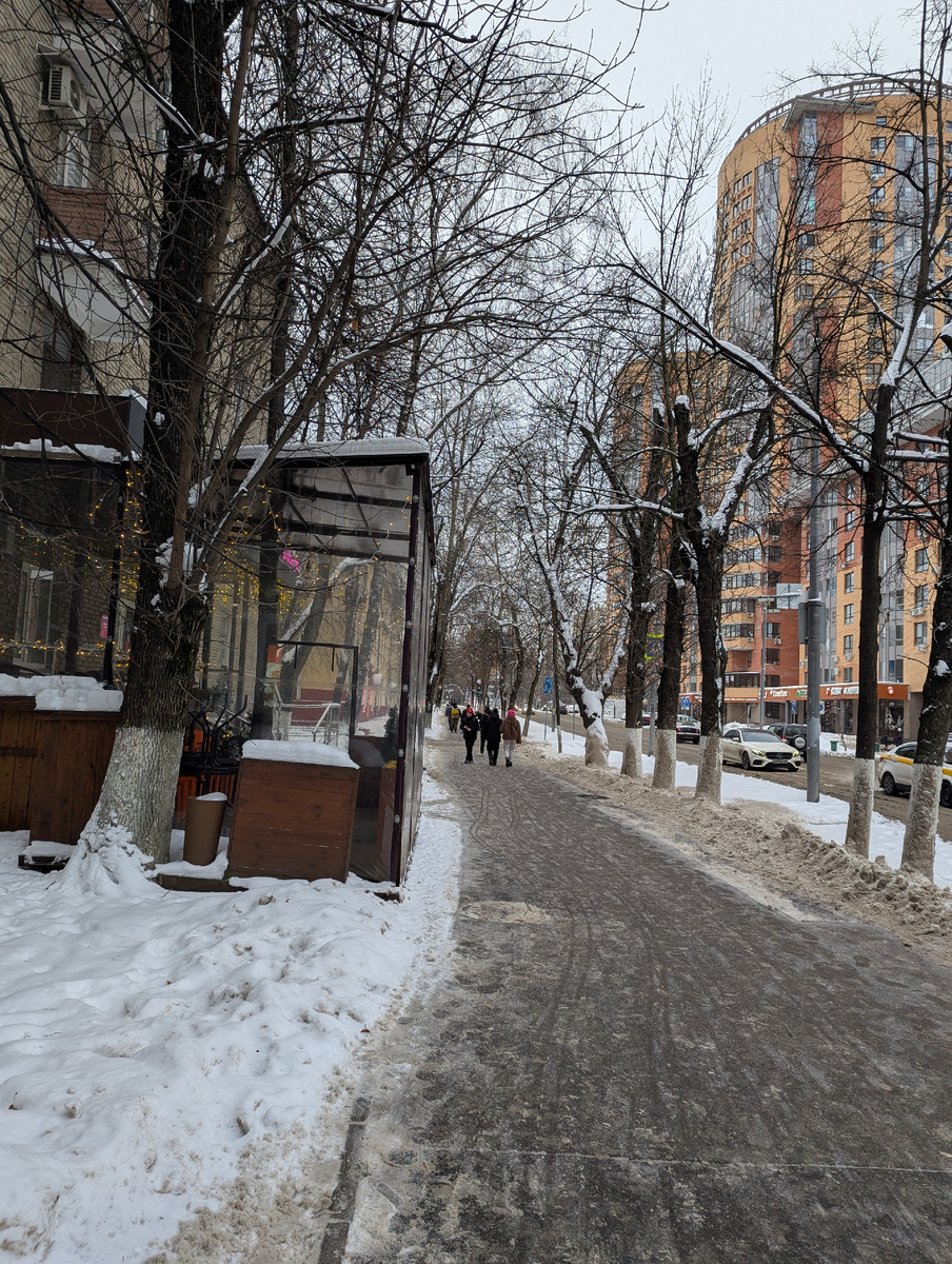 Сеанс на 14 - очень хорошо, на улице ещё светло, на автобус ни-ни, пойдем пешком. Ну, конечно, выбирая улицы, где расчищено получше.