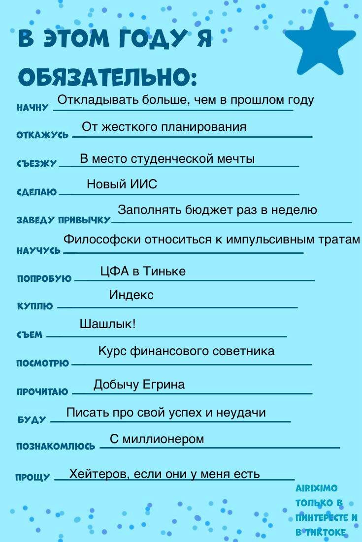 Решила заполнить анкету, нашла на Pinterest. Это будет моим небольшим планом на 2026, целей нынче ставить не хочу, лишь намечу план!