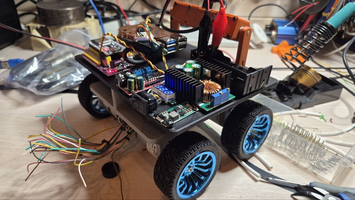 ! Полноприводный, двухкамерный робот сам себя не соберёт 🤖 Сегодня собрал силовую часть электроники: 🔋 питание ⚡️ система зарядки аккумуляторов 🔌 DC-DC регулятор на 5V для питания Raspberry Pi и ESP32 Силовая часть готова ✅ Дальше — логика, управление моторами, и робот вот-вот поедет 🚗💨 Новый год — новые проекты. Поехали!
