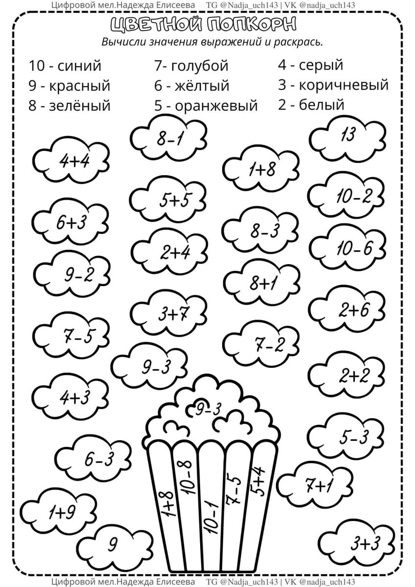 🔥Рабочий лист для 1 класса. Считаем и раскрашиваем. Собрала в сервисе Canva