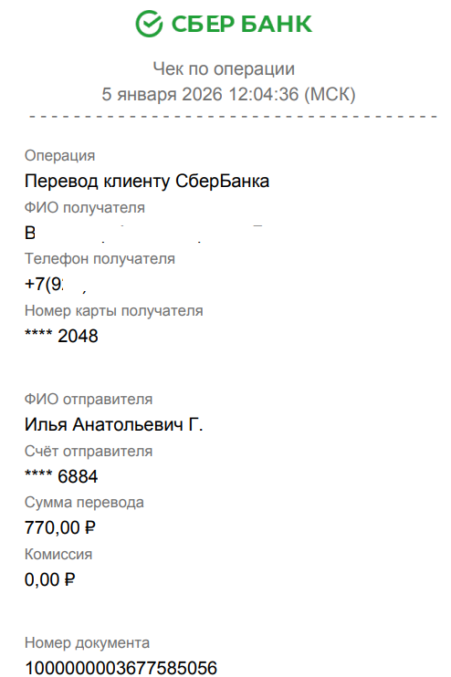 Докладываю результаты. Сумма сбора по Акции №45 "Всё для фронта! Всё для Победы!" составила 5 562 397,38 руб. План по акции перевыполнен более, чем на миллион рублей. Дополнительно оказана помощь двум подразделениям - 70-му гв. полку и полку 1308. Еще трем частям частям - 83-й гв. бригаде ВДВ, 163-й гв. танковому полку и 145-му полку морской пехоты - оказана помощь сверх изначально поставленных задач. Ай, да мы! Ай, да молодцы! Впрочем, чего это я заговорил языком персонажей иностранных мультиков. Мы - команда! Мы - семья! Так пройти новогодний сбор, да еще закрыть большие заявки по следующей акции - это о многом говорит. Мы - это и есть настоящая Россия! Не побоюсь этих громких слов. Еще раз говорю всем спасибо. Не от себя. От сражающихся солдат и офицеров. Общая сумма сбора по 45-ти акциям составила 213 099 558,69 руб. Сегодня еще потратились на новую дверную ручку на УАЗ. Двери в военной машине должны хорошо открываться. Встало в 770 рублей. Вот скриншот моего перевода: На счет