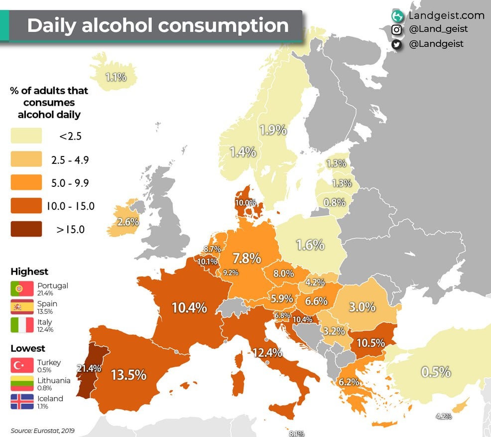Употребление алкоголя - не конкретно в Новый год, когда шампанское пьют даже непьющие, а вообще ежедневно. Разница с Румынией, да и с другими соседями впечатляет.