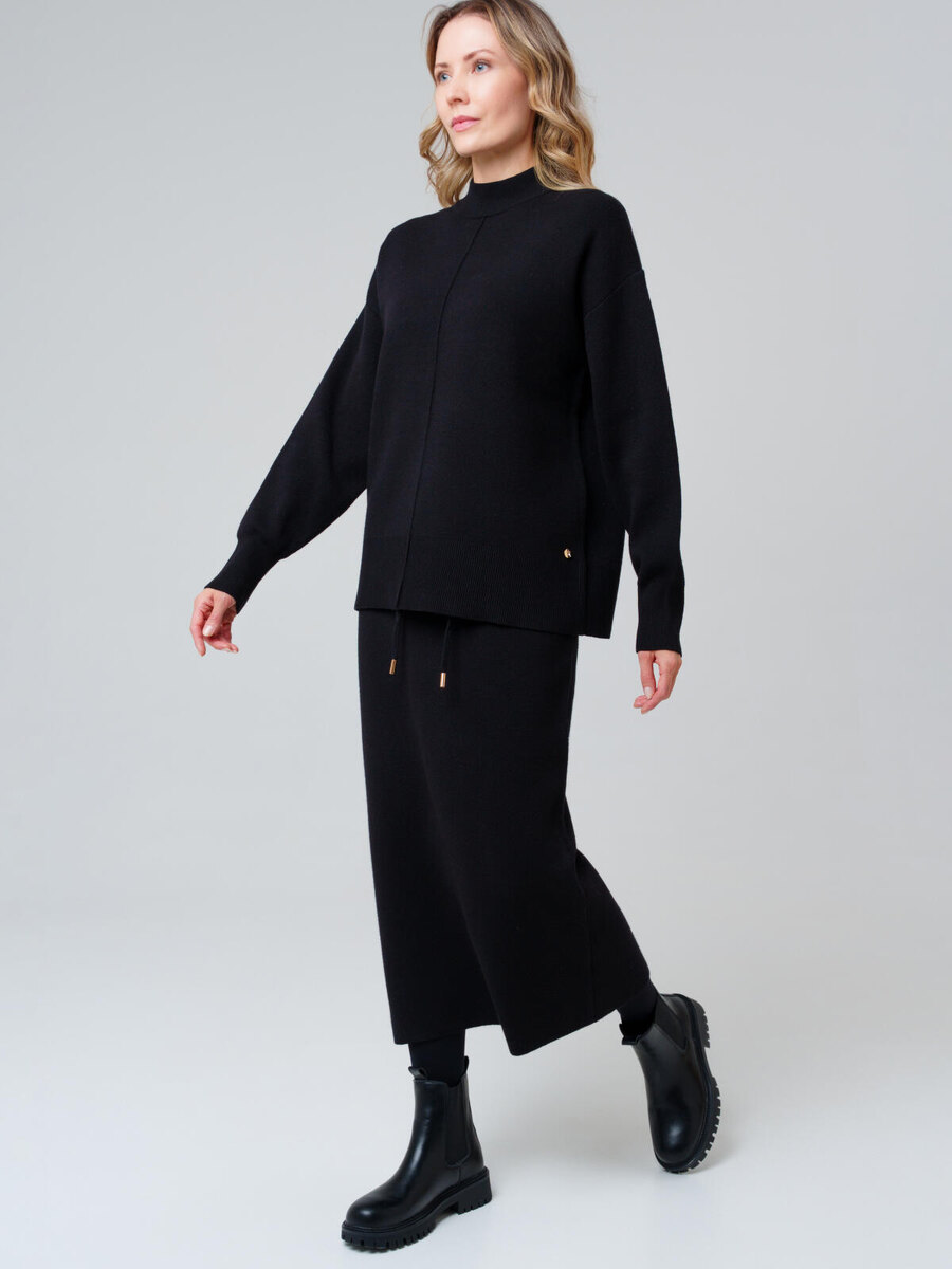 - Описание: Этот костюм джемпер и брюки в классическом черном цвете — это инвестиция в ваш гардероб. Он легко сочетается с другими элементами одежды и подходит для любого случая.