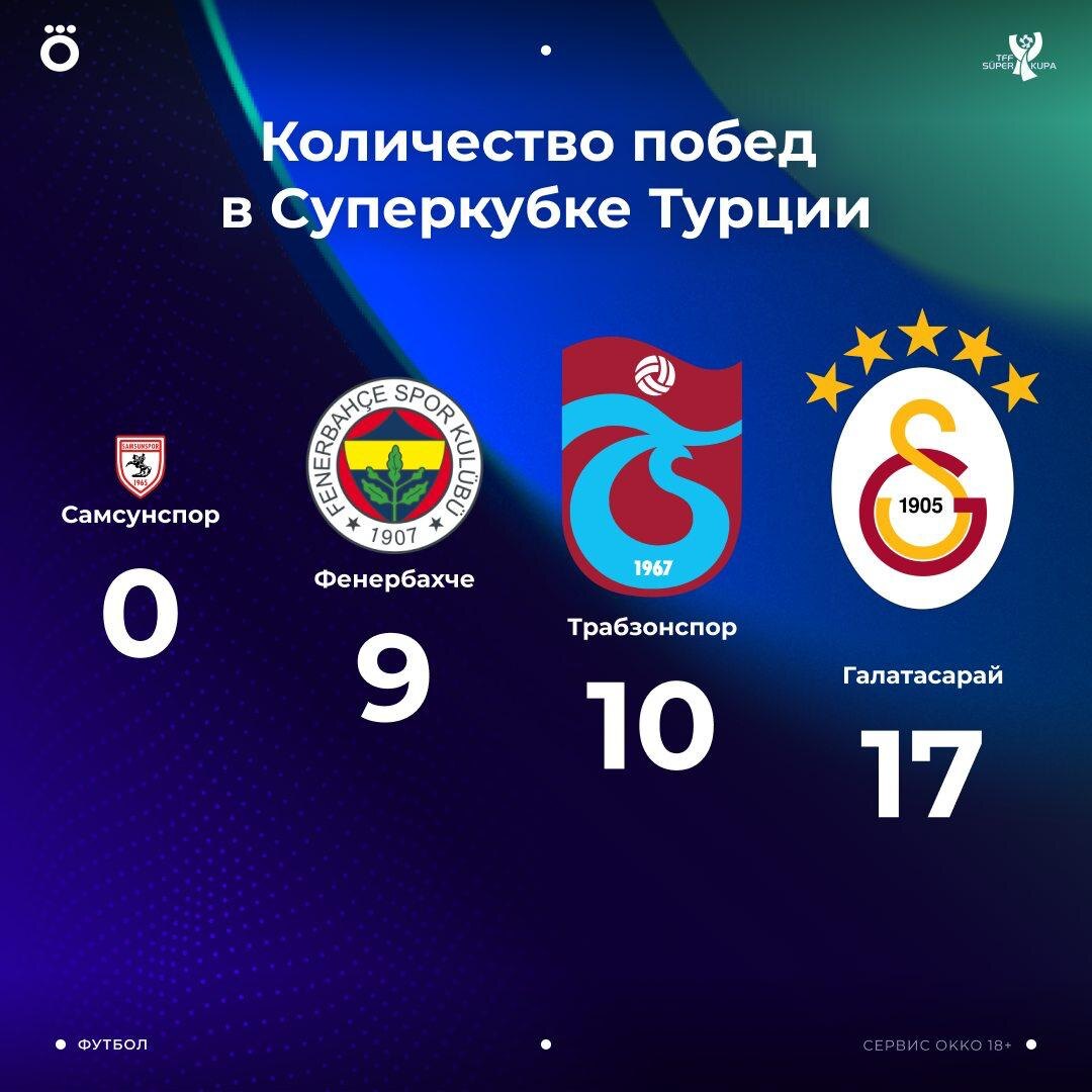 ». Сегодня стартует Суперкубок Турции 🇹🇷 «Львы» выигрывали трофей 17 раз, а «Самсунспор» впервые примет участие в этом турнире. В 20:30 смотрим первый полуфинал — «Галатасарай» сыграет против «Трабзонспора». Пиши в комментах, кто станет обладателем Суперкубка Турции 👇