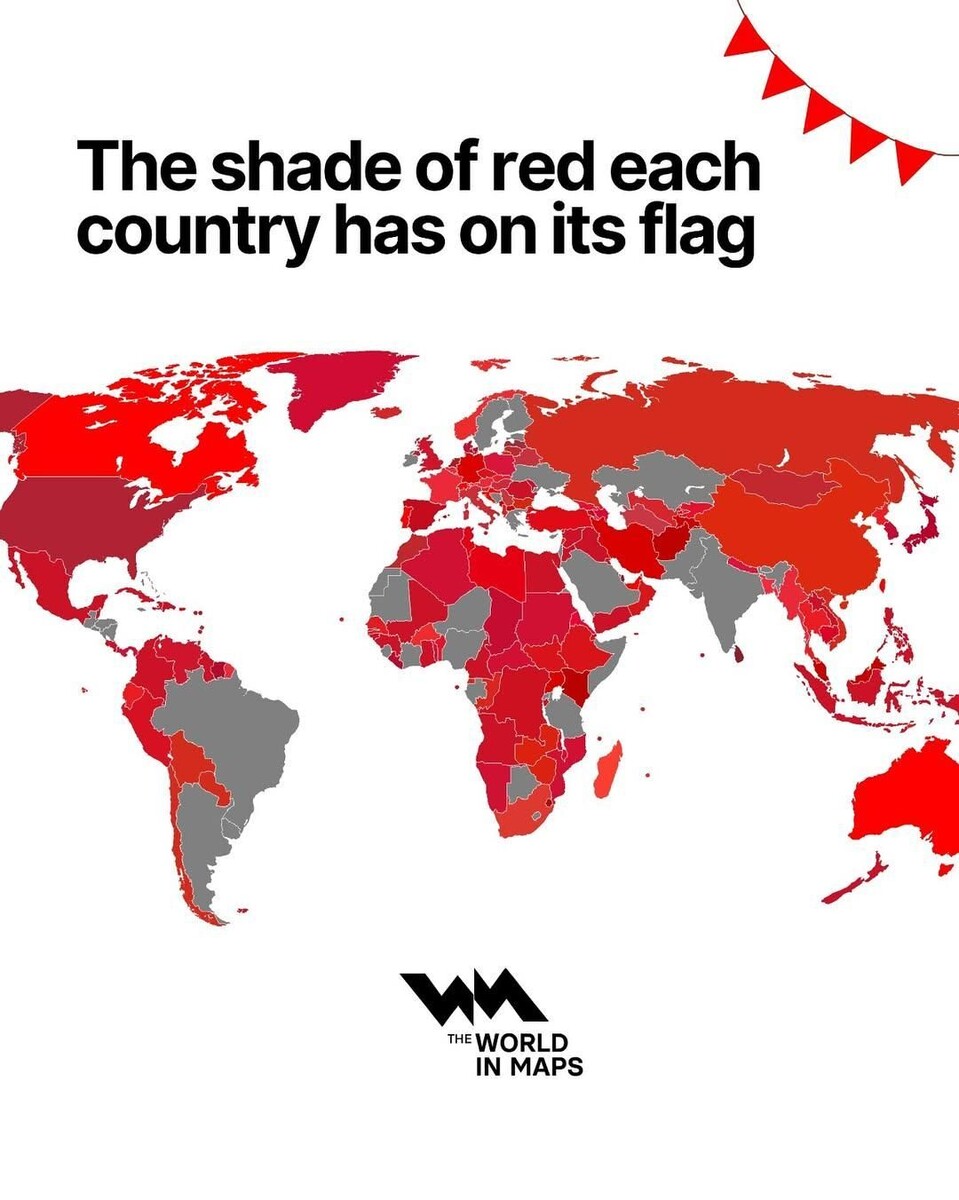 И в самом деле, подавляющее число государств имеют красный цвет в своих национальных символах - пусть и немного, пусть и в разных оттенках, но он на месте. Не важен ни специфичный культурный контекст, ни идеология, ни религия, ни местные особенности - всюду он востребован и популярен: