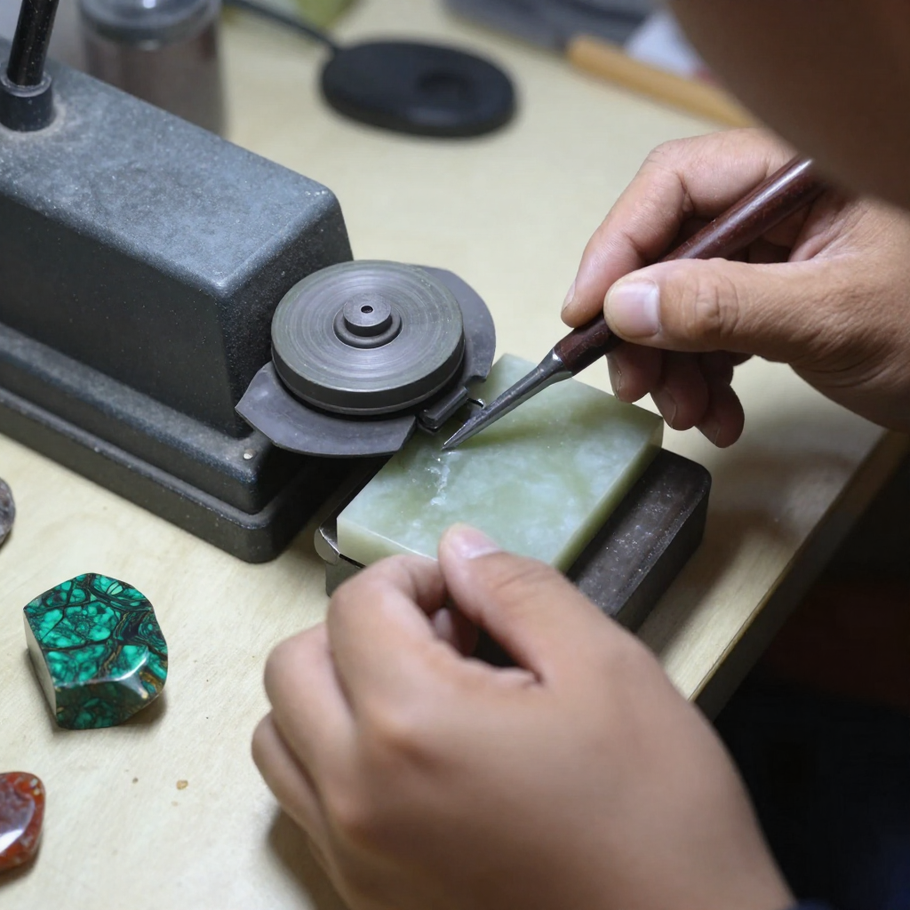 - Формовка и шлифовка. Здесь на сцену выходят станки с алмазными фрезами, шлифовальные машины. Но финальная форма, изгиб вазы, контур шкатулки по-прежнему выводится умелыми руками. Мастер чувствует камень через вибрацию инструмента.