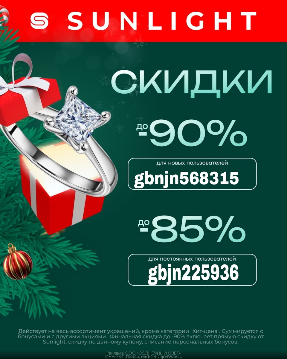 ❗️Финальная скидка до -90% включает прямую скидку от Sunlight, скидку по данному купону, списание персональных бонусов