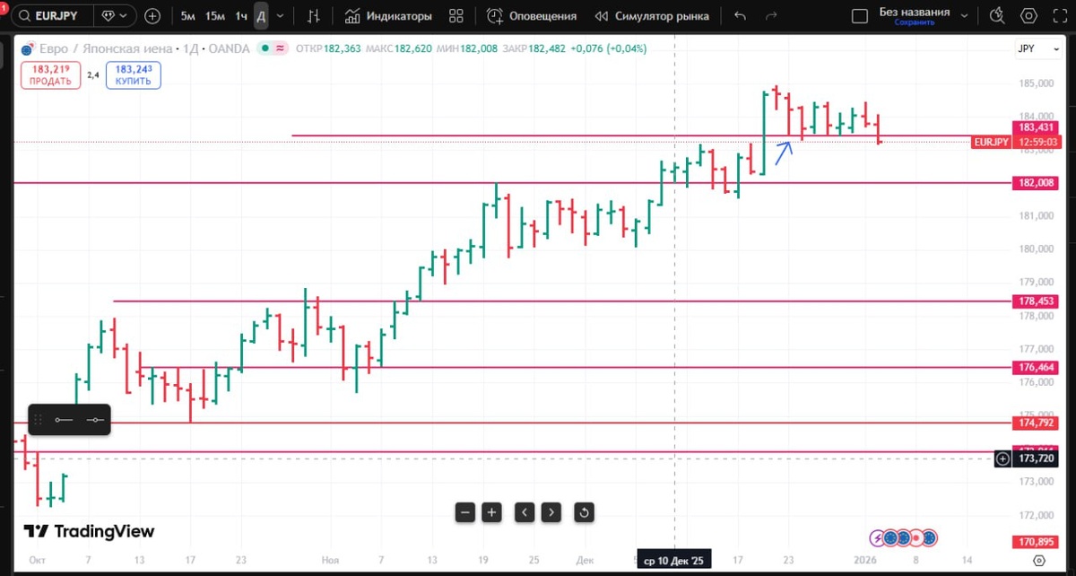 Это отличный пример того, как отрабатывают уровни с дневного графика на любых видах активов. И помимо уровня, обратите внимание на накопление! Выше этого уровня больше недели открывались позиции участниками рынка. Многие покупали валютную пару и понятно, за счёт кого будет движение вниз ниже уровня. За счёт вот этих лонгистов, которые будут закрывать свои позиции и выходить по стоп лоссам, потому что они начинают терять деньги, инструмент заходит в шортовую плоскость. Поэтому, помимо уровня ещё очень важно чтобы в инструменте была энергия для движения. Мы должны понимать, за счёт кого будет падение или рост!