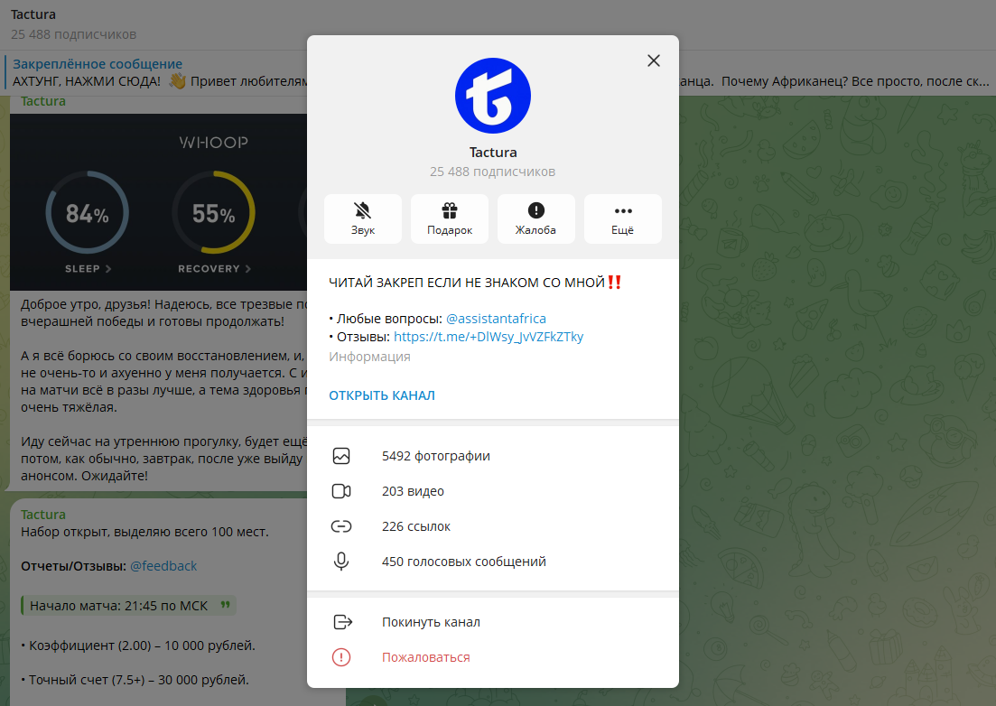 Проект Tactura активно продвигается как «инновационный сервис для ставок», якобы предоставляющий эксклюзивные инсайды, недоступные обычным бетторам. Автор проекта уверяет, что его методика обеспечивает почти стопроцентную проходимость и стабильный заработок без риска.
