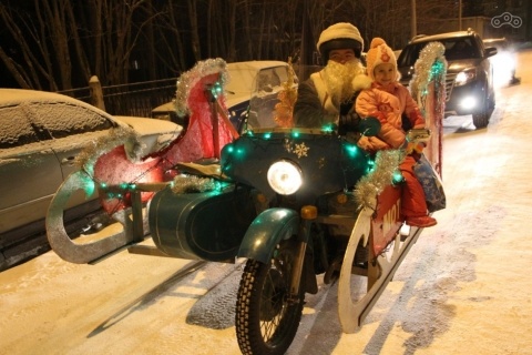 В Мурманской области в новогодние каникулы проходит акция «Мото-Новый год», в рамках которой Дед Мороз и Снегурочка на мотоцикле посещают города и посёлки региона.