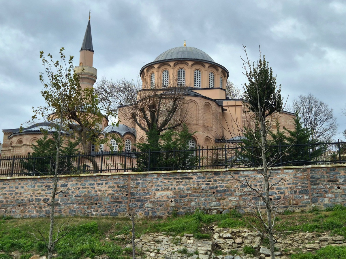 Монастырь Хора, он же сегодняшняя мечеть Карие Джами — это роскошный христианский памятник. Датирован он аж XI веком, но большая часть сохранившегося и самого интересного внутри чуть-чуть моложе: XIV век. Я говорю про мозаики и фрески (внутри есть и то, и другое). Сегодня всё это стало музеем, но с оговорками: в определенные часы туристов прогоняют, чтобы посетители мечети могли воспользоваться ею по прямому религиозному назначению. Расписание доступно, можно подгадать время визита. Правда, нам подгадать не удалось (как понятно из предыдущих строк, не до того было), но все сложилось хорошо: приехали за 40 минут до начала молитвы, нам времени хватило.