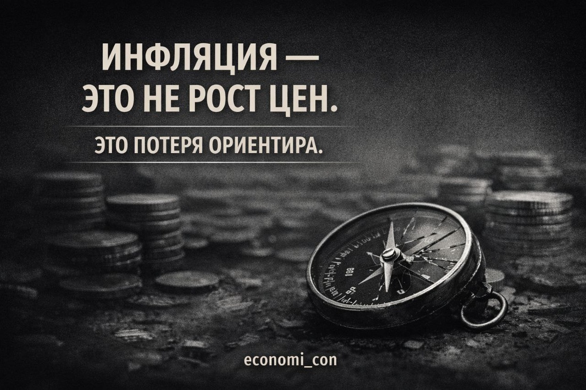 Это потеря ориентира. Инфляцию любят объяснять ростом цен. Так проще. И так спокойнее для психики. Если проблема «в магазинах», значит, её можно переждать. Если проблема «в деньгах» — уже сложнее. Рост цен — это следствие. Инфляция начинается раньше — в тот момент, когда деньги перестают быть надёжной мерой стоимости. Когда дорожает всё сразу, кажется, что мир сошёл с ума. На самом деле просто линейка стала короче. И виноваты в этом не товары. В условиях инфляции меняются не только цифры: — люди торопятся тратить, — перестают считать в долгую, — путают риск с нормой, — принимают импульсивные решения за рациональные. Это не слабость характера. Это адаптация к среде, где деньги больше не сохраняют смысл. Поэтому инфляция опаснее, чем кажется. Она влияет не на кошелёк — она влияет на поведение. А поведение почти всегда меняет экономику сильнее, чем любые официальные отчёты. ——— Инфляция — это когда деньги есть, а уверенности в них уже нет.