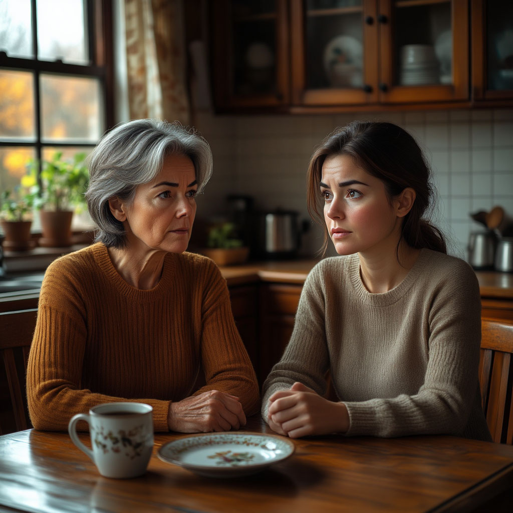 Олеся сидела перед матерью, уткнувшись взглядом в край кухонного стола. По щекам текли слёзы, будто внутри что-то давно надломилось и теперь медленно давало трещину.