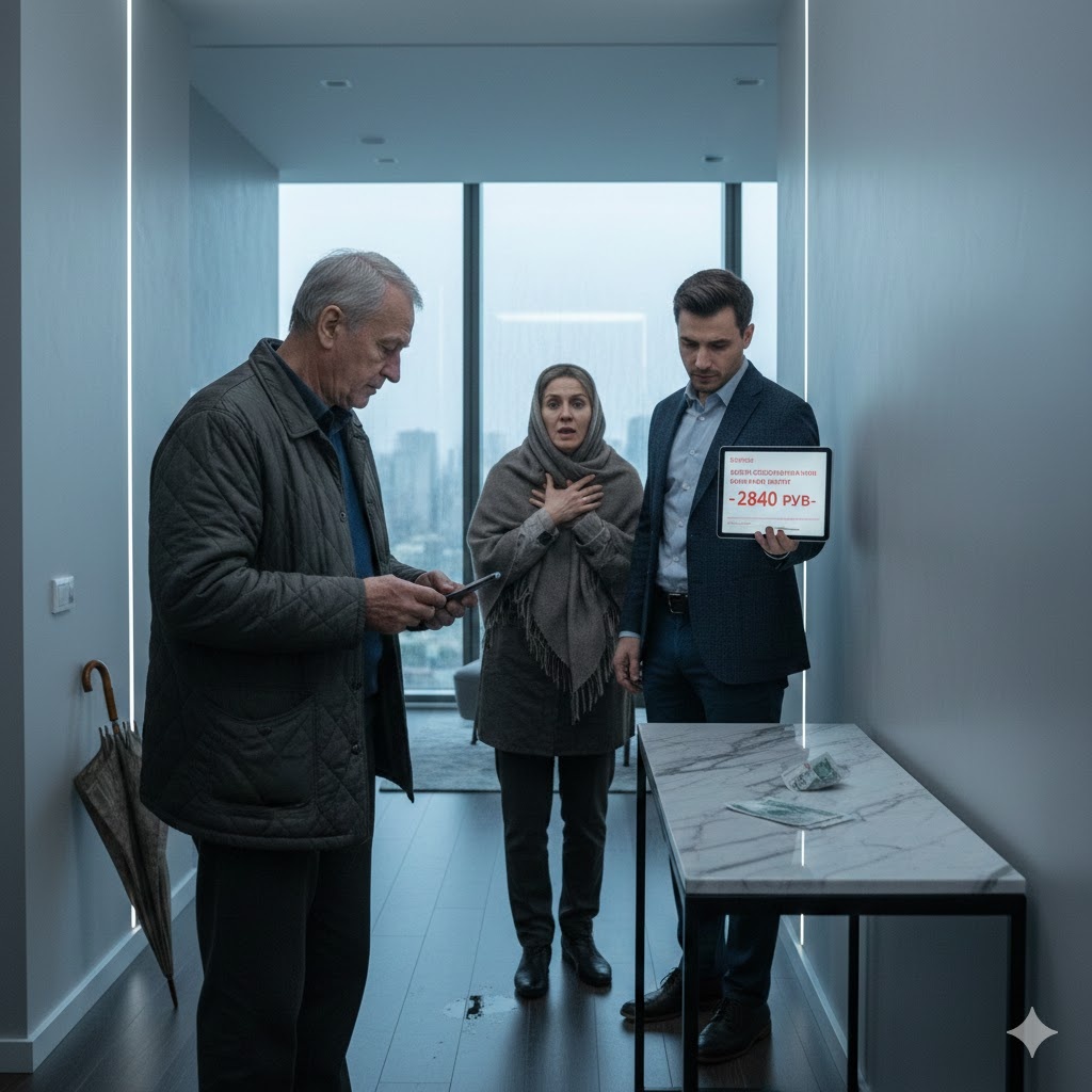 На следующее утро в квартире на двадцать втором этаже всё было как обычно — по крайней мере, так казалось на первый взгляд. Кофемашина выдавала идеальную пенку, робот-пылесос бесшумно скользил по ламинату, а Марина, одетая в шелковый халат цвета жемчуга, изучала графики на планшете. Три тысячи рублей, оставленные отцом, аккуратным стопкой лежали на мраморной столешнице. Костя старался на них не смотреть. Они жгли ему глаза, словно радиоактивный элемент.